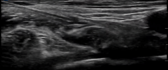 Place the linear transducer along the inguinal crease as shown below. Try to visualise the Femoral Vein which is the medial most vessel, Femoral Artery which is lateral to the Vein and the Femoral Nerve that looks like a triangular hyper-echoic bunch of Grapes.